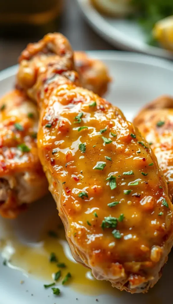 Simple garlic butter sauce enhances the natural flavor of crispy baked wings.