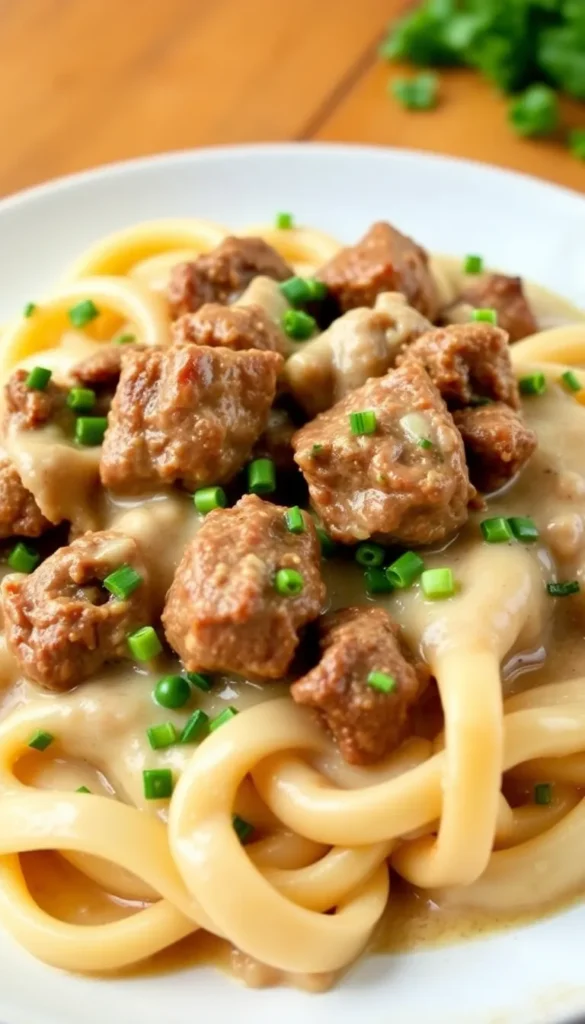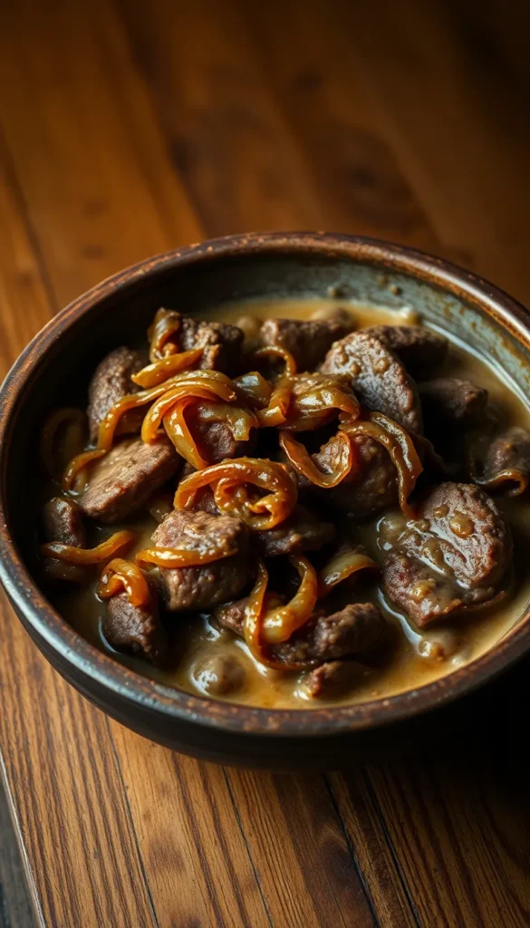 11. Beef Stroganoff with Caramelized Onions