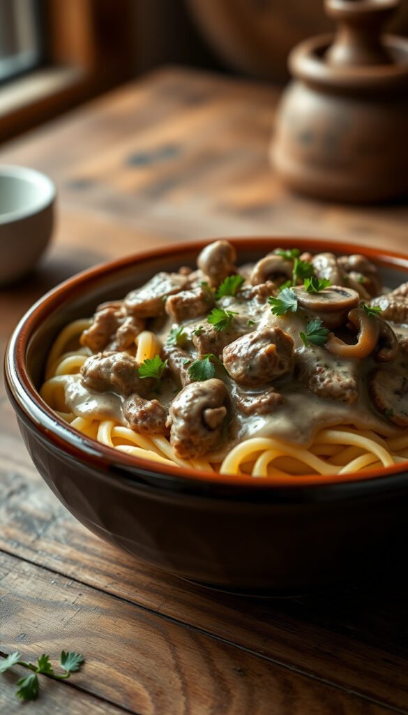 2. Creamy Mushroom-Forward Beef Stroganoff