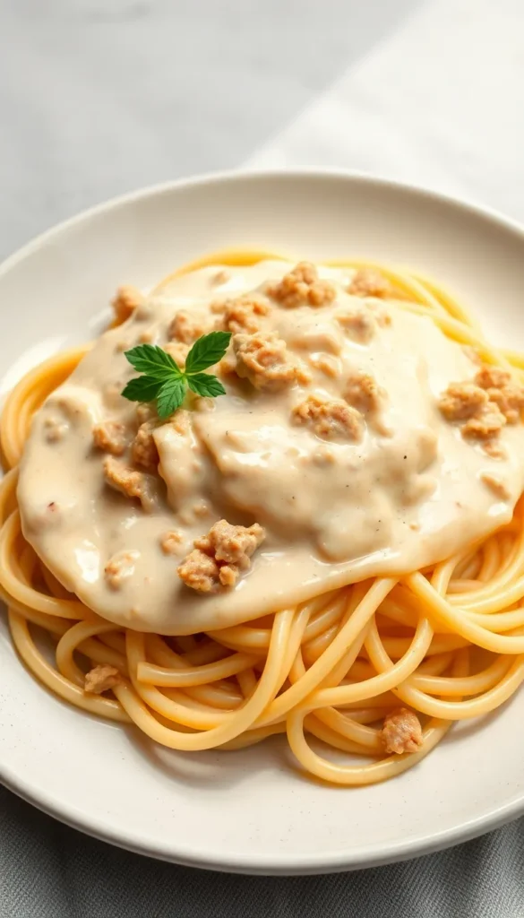 Prepare classic Bolognese, then stir in cream at the end. Rich, smooth, and comforting.