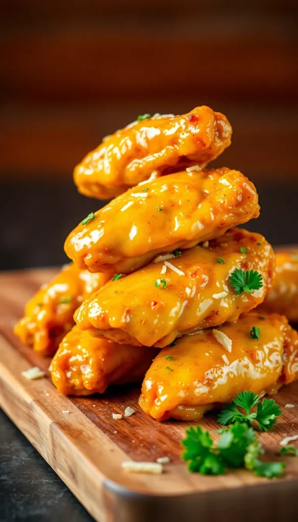 The garlic parmesan flavor is one of the most iconic sauces from Buffalo Wild Wings. Unlike spicy sauces, this one is mild, creamy, garlicky, and perfectly savory. The combination of garlic, butter, parmesan, and herbs gives the chicken a luxurious richness that keeps people coming back for more.