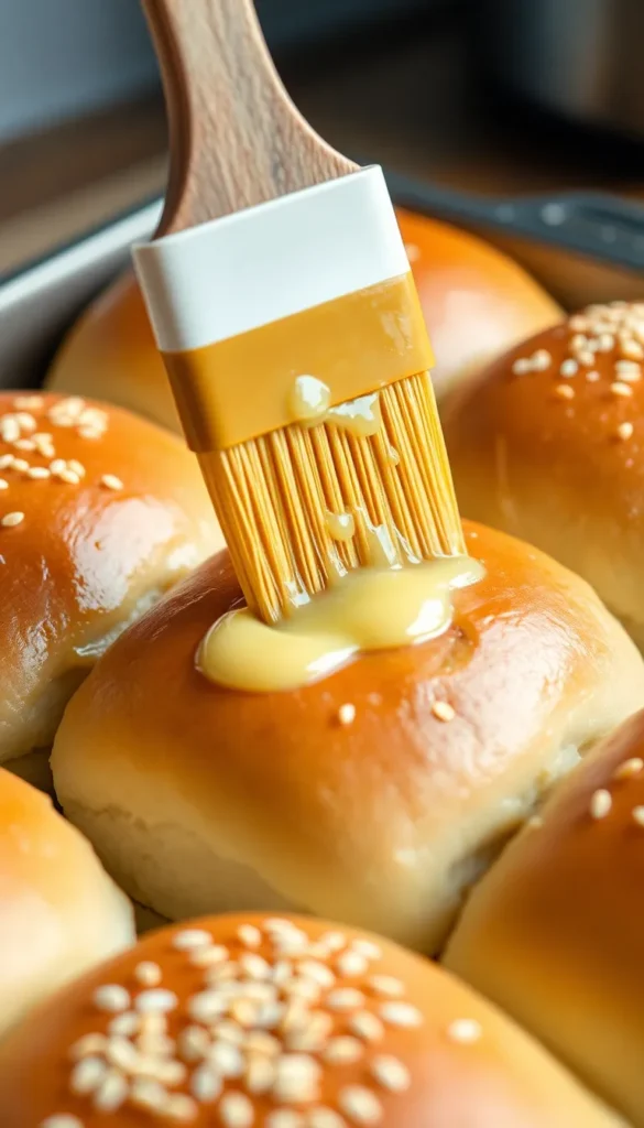 Brush melted butter over the tops of the buns and sprinkle with sesame seeds if desired. This adds flavor and a golden-brown finish.
