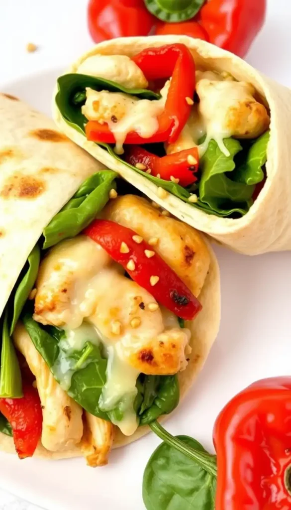 13. Cheesy Garlic Chicken and Roasted Pepper Wrap