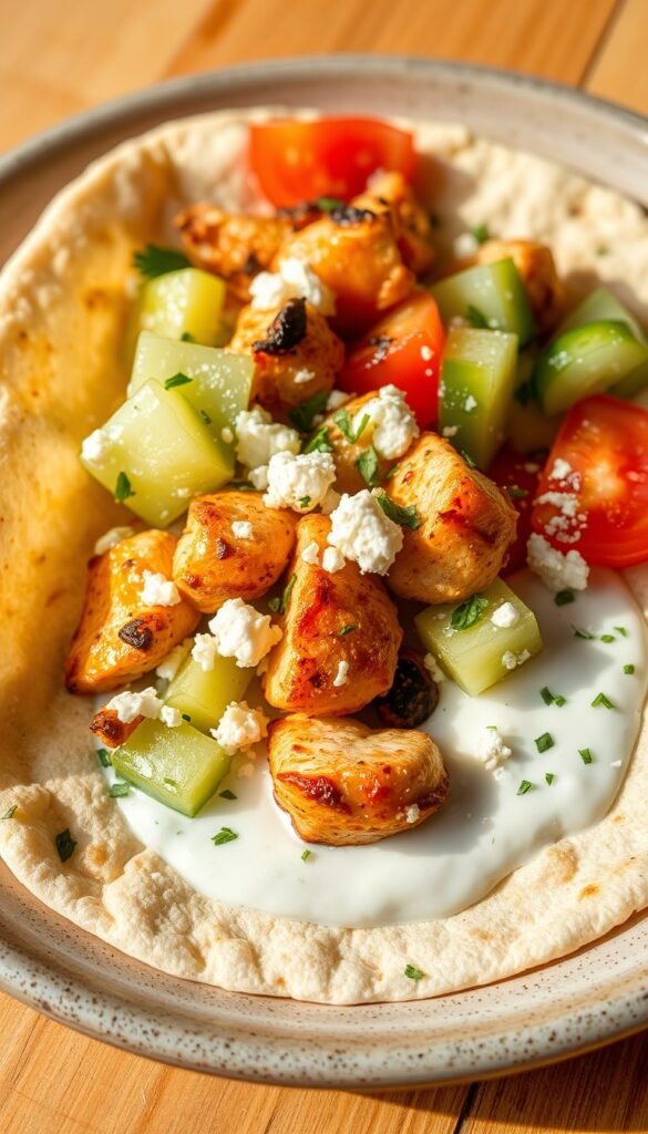 5. Mediterranean Cheesy Garlic Chicken Wrap