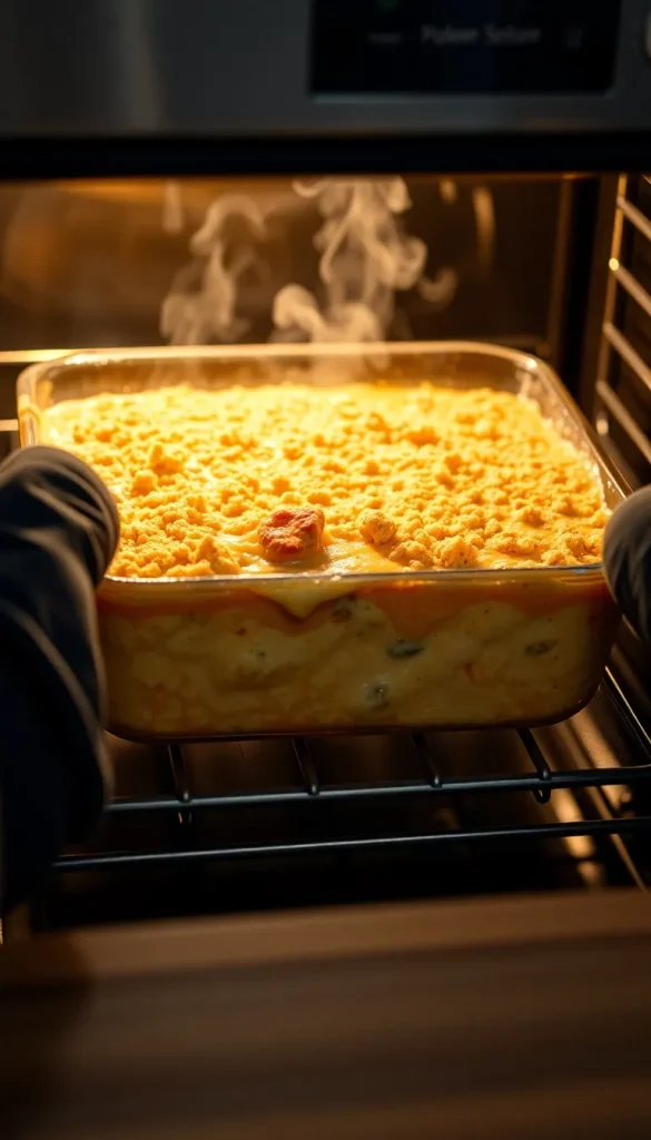 Bake uncovered for 30–35 minutes, or until the casserole is bubbly and the topping is golden brown. Let it rest for 5–10 minutes before serving.