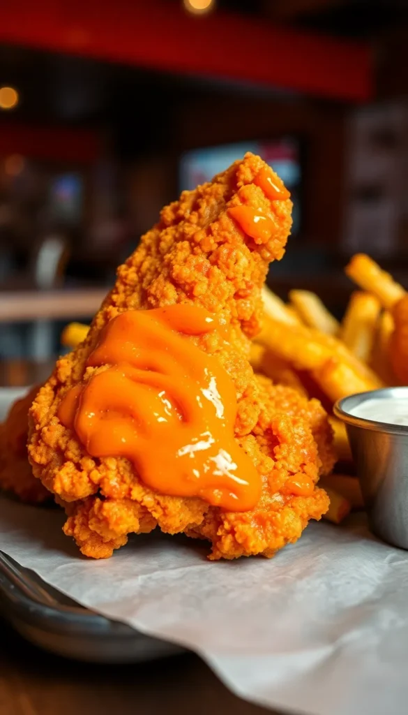 Toss fried chicken in buffalo sauce and serve with ranch or blue cheese.