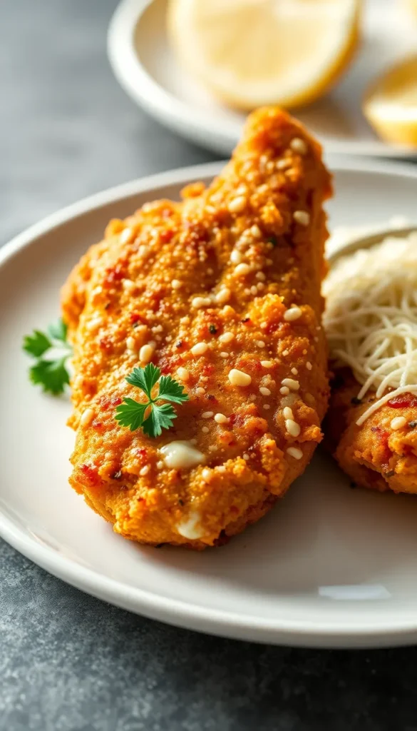 Mix grated Parmesan and garlic powder into the breading for a cheesy, savory crunch.