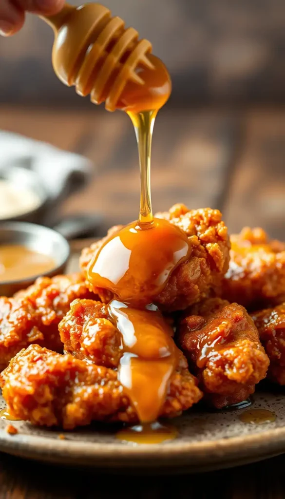 Drizzle fried chicken with warm honey butter for sweet and savory contrast.