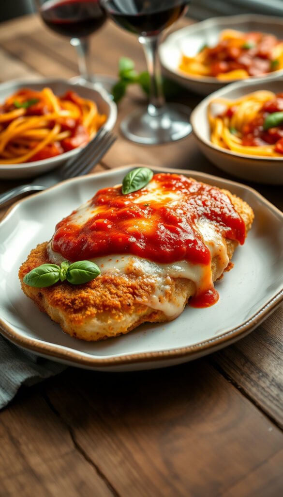Chicken Parmesan’s appeal lies in its perfect balance of textures and tastes — the crunchy breading, tender chicken, tangy tomato sauce, and gooey melted cheese come together to create a dish that satisfies every craving. Plus, it’s incredibly versatile. Serve it over pasta, with a side salad, or even on a sandwich roll for a hearty meal.