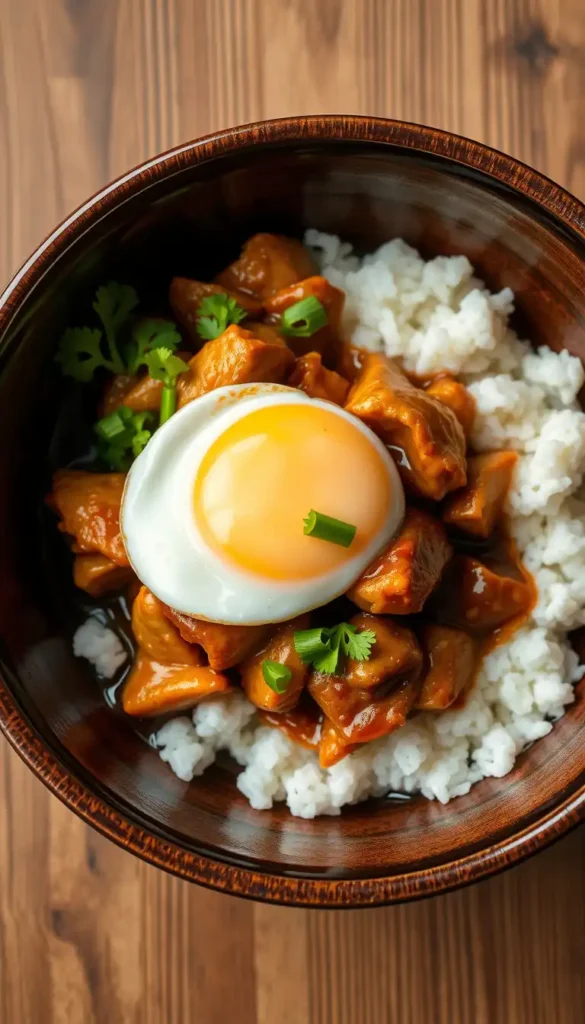Simmer chicken in sweet soy sauce and serve over rice with a soft egg.