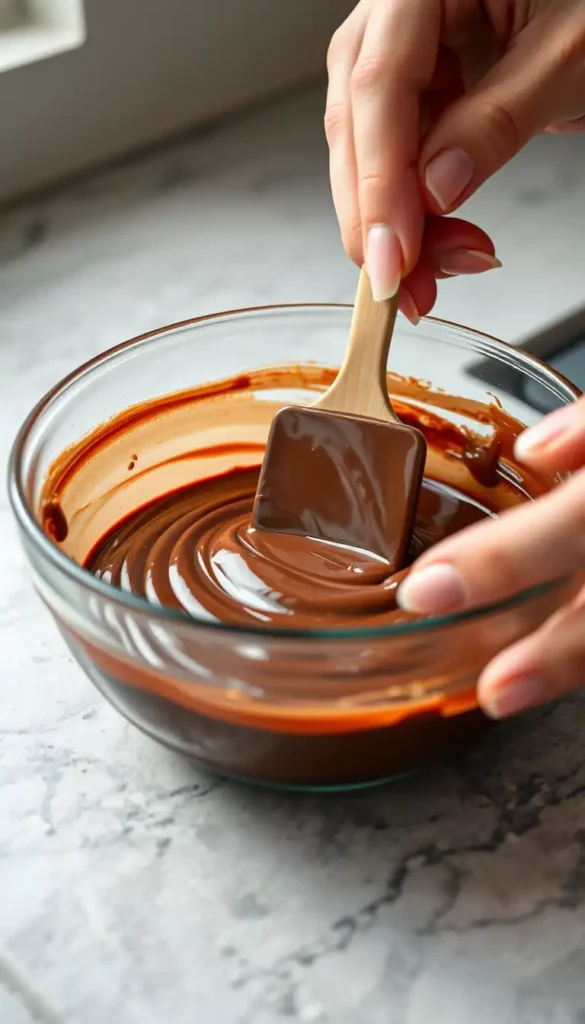 - Stir Until Smooth: Gently stir with a spatula until all the chocolate melts and the mixture is glossy. Add butter and vanilla, if using, and stir until fully incorporated.