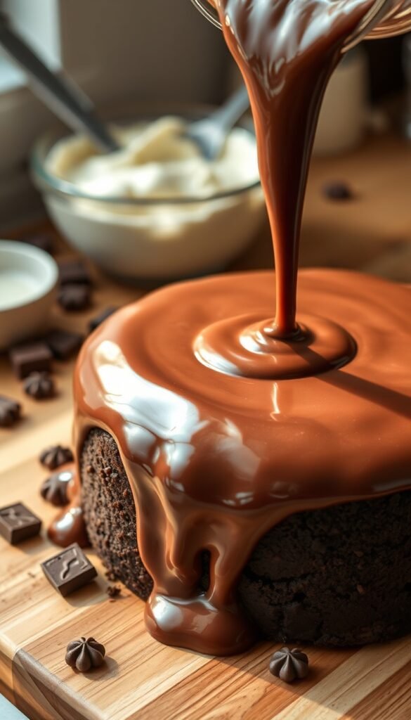 Pro tip: For a perfect cake glaze, pour ganache in the center and gently spread it toward the edges, letting it drip naturally.