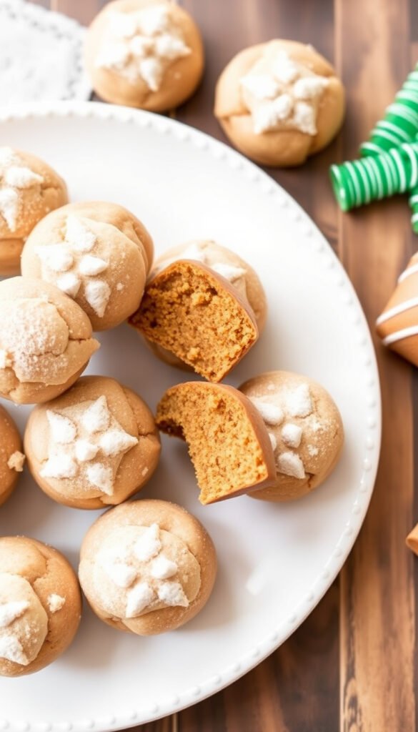 Tiny bite-size gingerbread squares coated in powdered sugar or icing.
