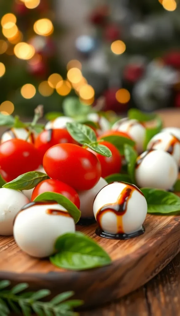Light, colorful, and festive, mini caprese skewers bring classic Italian flavors to your Christmas appetizer tray.