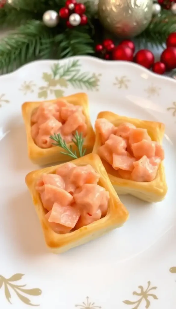 Creamy salmon filling wrapped inside flaky pastry squares.