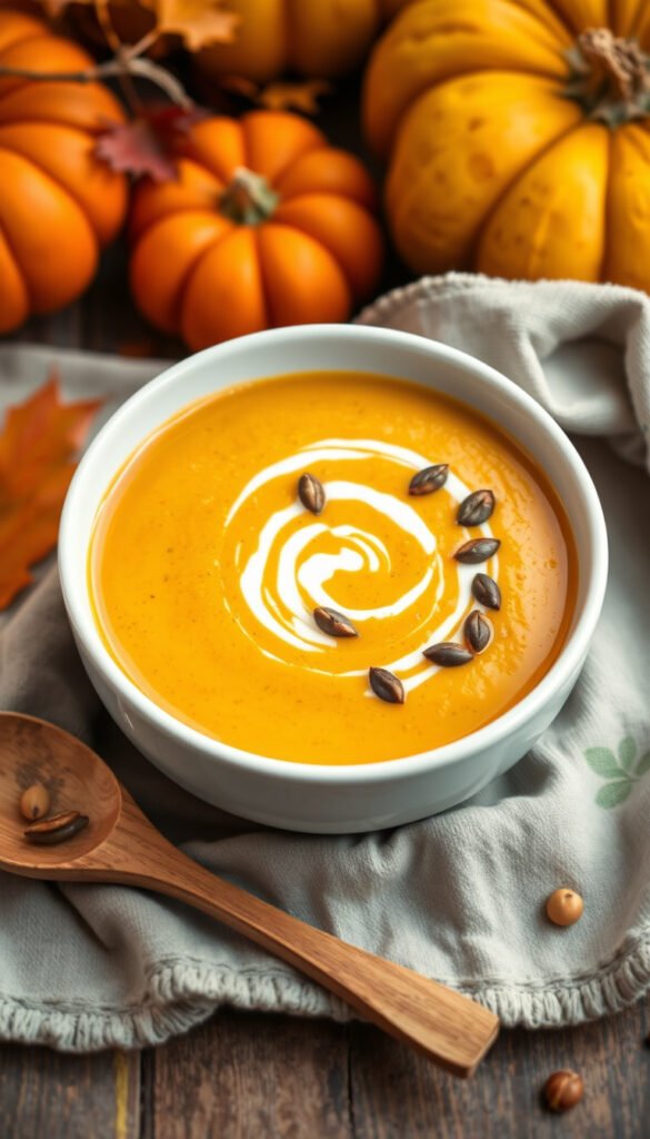 Ingredients: Pumpkin purée, onion, garlic, vegetable broth, cream