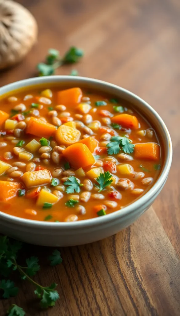 Brown beef, add vegetables and broth, then simmer 1½ hours. Add barley and cook until tender.