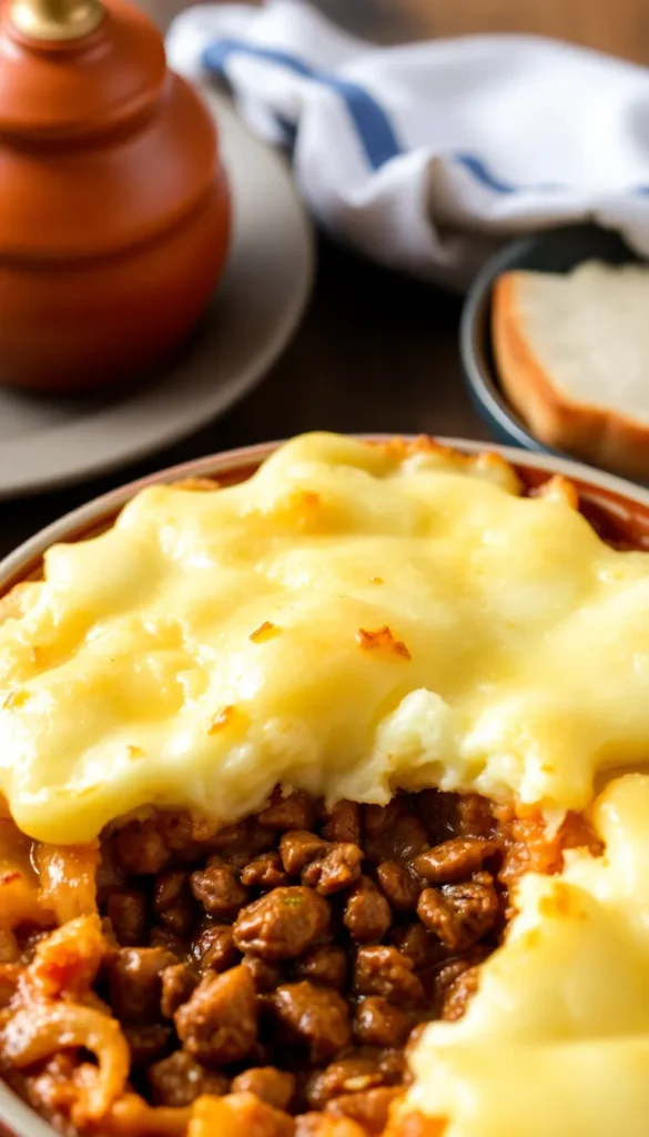 Ingredients: Ground beef, vegetables, mashed potatoes