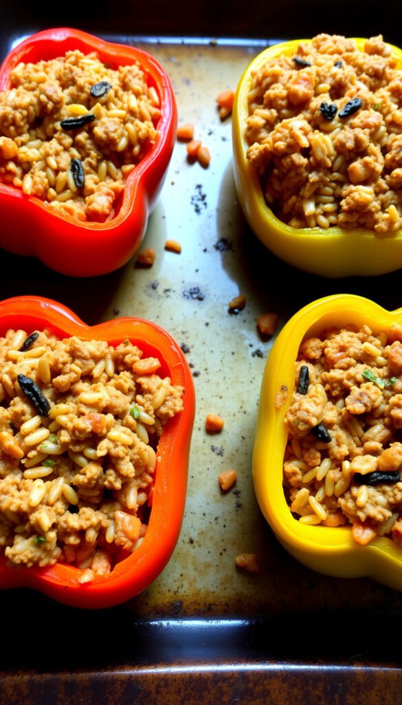 Ingredients: Peppers, ground beef, rice, tomato sauce