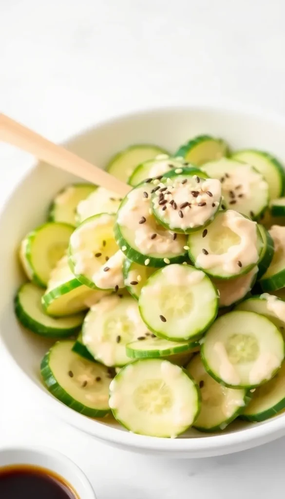 Mix dressing ingredients and combine with cucumbers for an umami-rich salad.