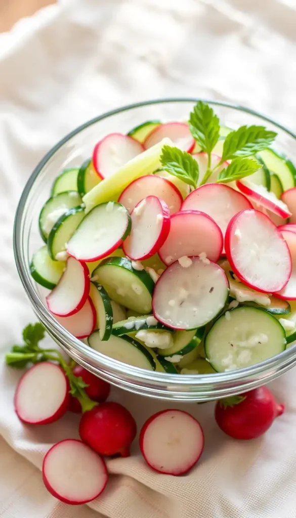 Combine dressing ingredients, then mix with cucumbers and radishes for crunch.