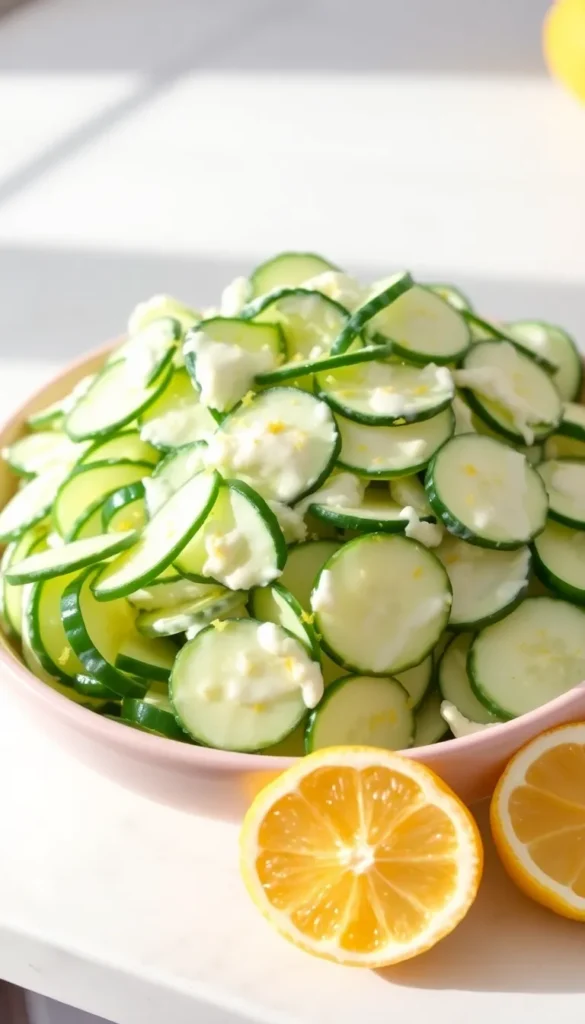 Mix lemon zest into sour cream, toss with cucumbers, and serve chilled.