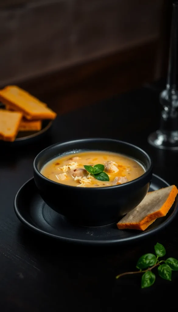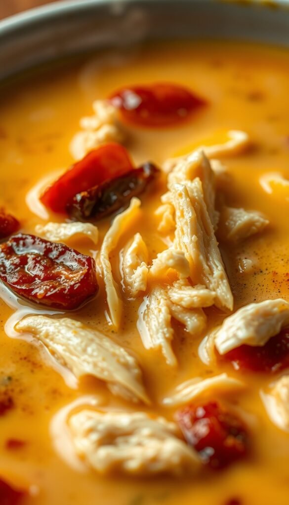While this soup is indulgent, it can still fit into a balanced diet. It’s high in protein from chicken and can be packed with veggies. To lighten it up, use half-and-half instead of heavy cream or reduce the cheese slightly.