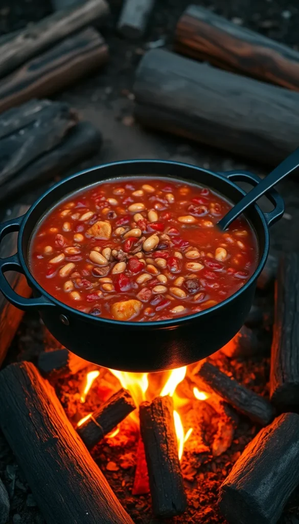 Make ahead tip: Warm the chili in a small pot over the fire.