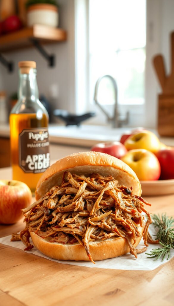 Cook pork in apple cider. Shred and add BBQ sauce for a fruity tang.