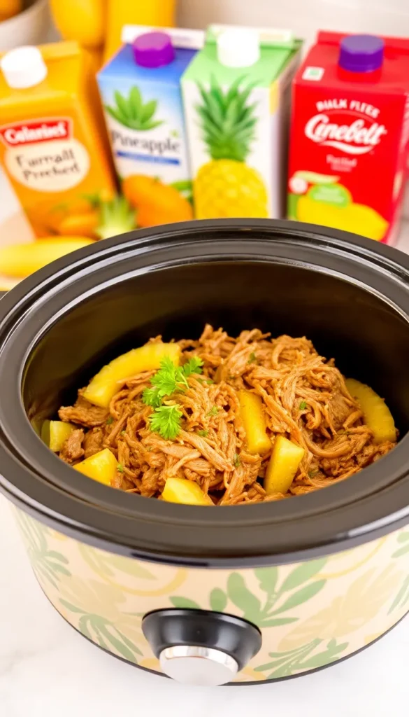Cook pork in pineapple juice. Shred and mix with BBQ sauce for sweet tropical notes.