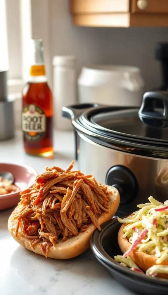Slow cook pork in root beer for 8 hours. Shred and stir in BBQ sauce for a rich, sweet flavor.