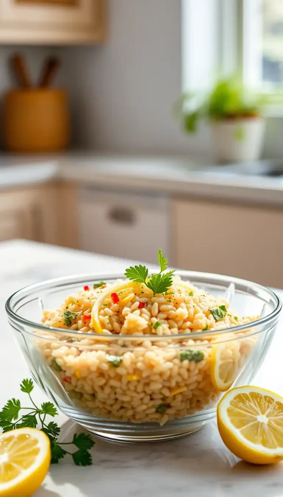 Ingredients: Cooked barley, lemon juice, olive oil, parsley
