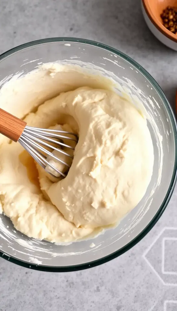 Mix cheese and garlic into the dough, knead gently, and let rise before baking.