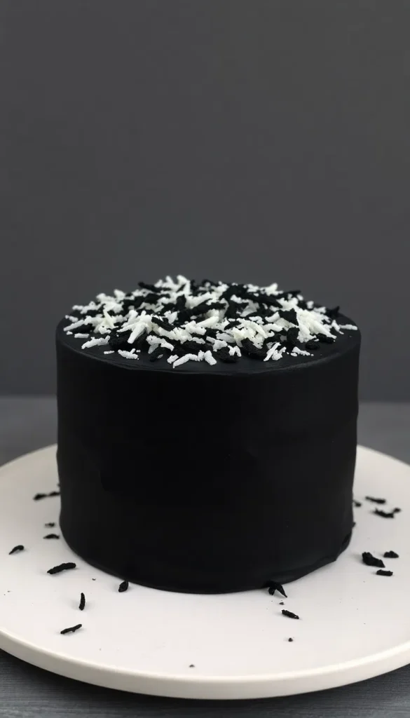 Method: Bake black cocoa layers; fill with cream cheese; frost in matte black.