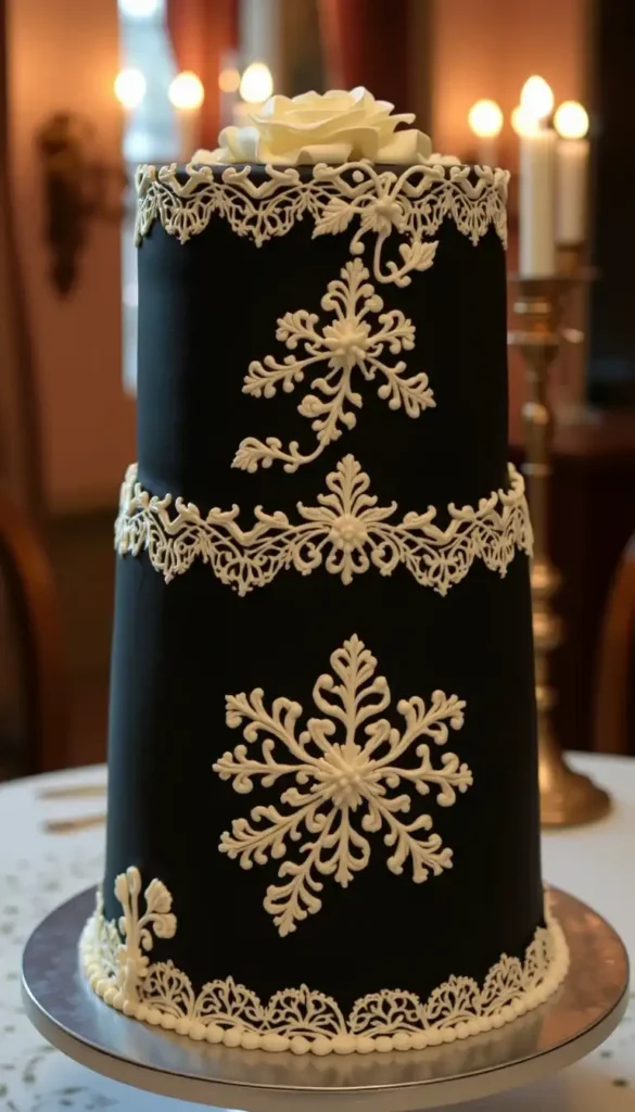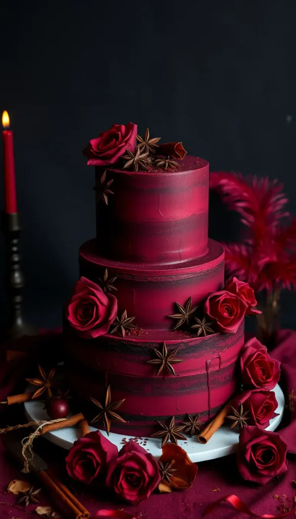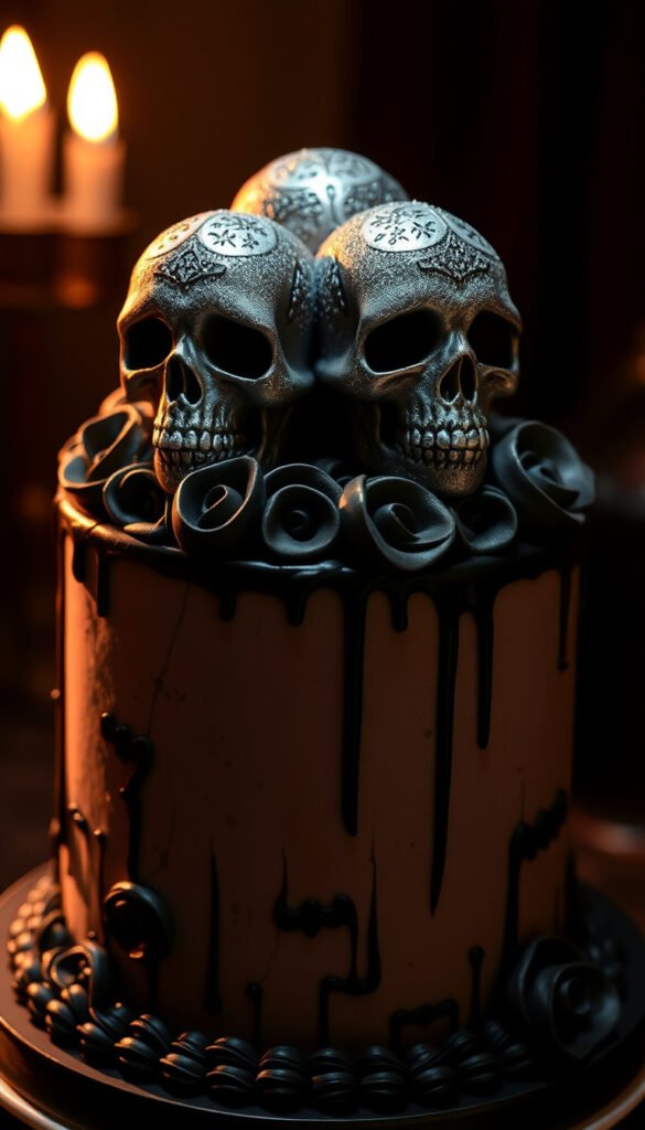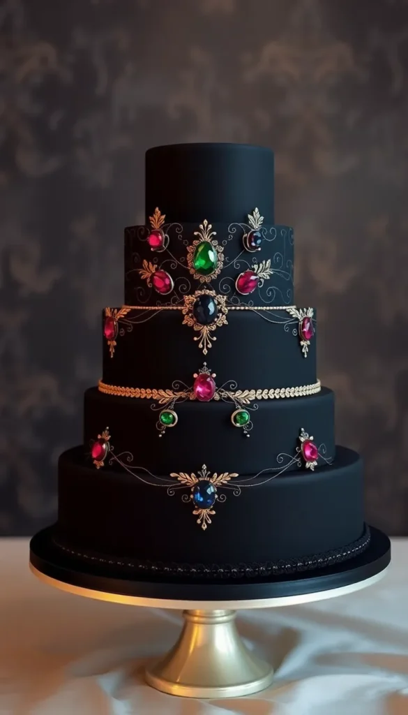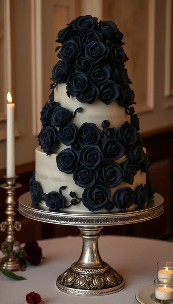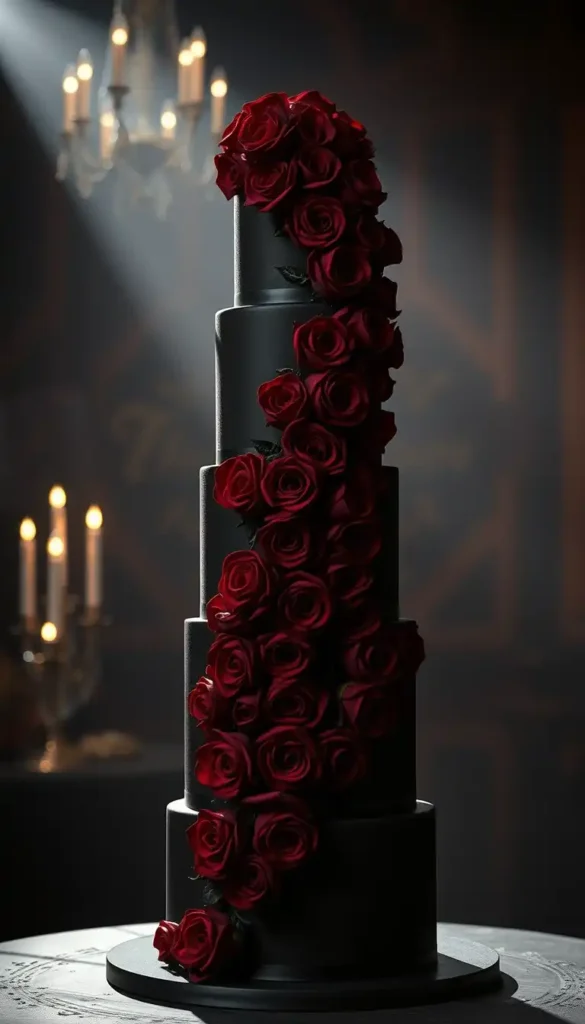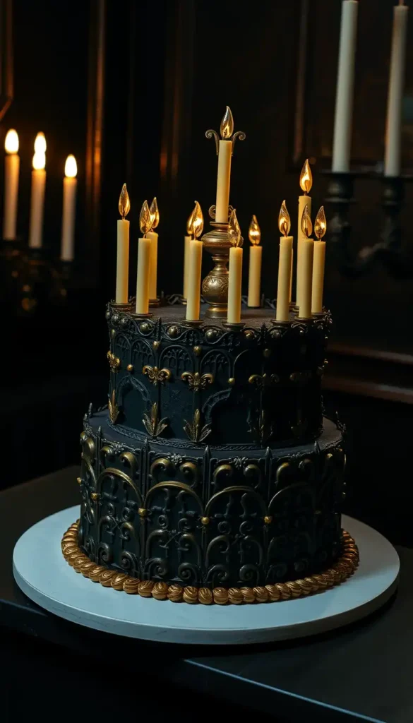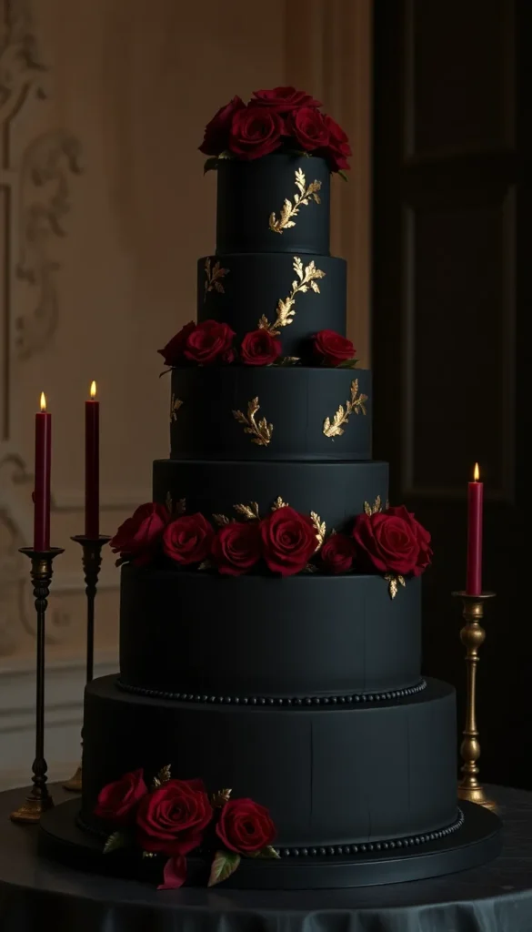 A Gothic cake isn’t just dark. It’s dramatic, mysterious, and enchanting. Common elements include: