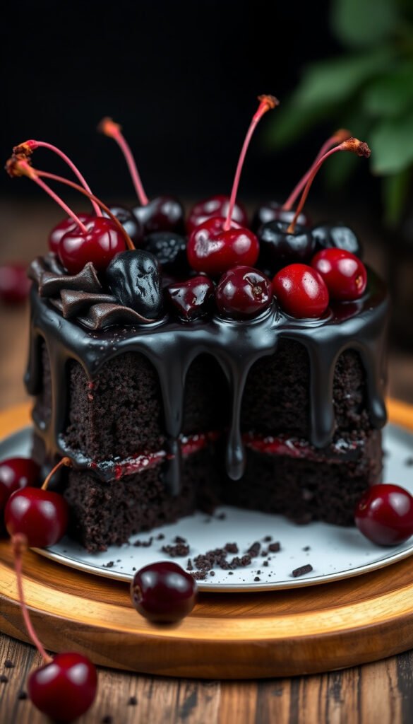 From black buttercream towers to blood-red velvet layers, edible lace, dark chocolate drips, black roses, and skull-topped masterpieces, these recipes bring the perfect mood to your hauntingly beautiful celebration.