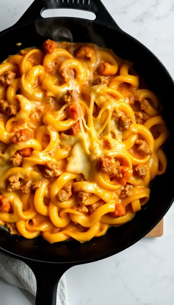 2. Cheesy Beef Pasta Skillet