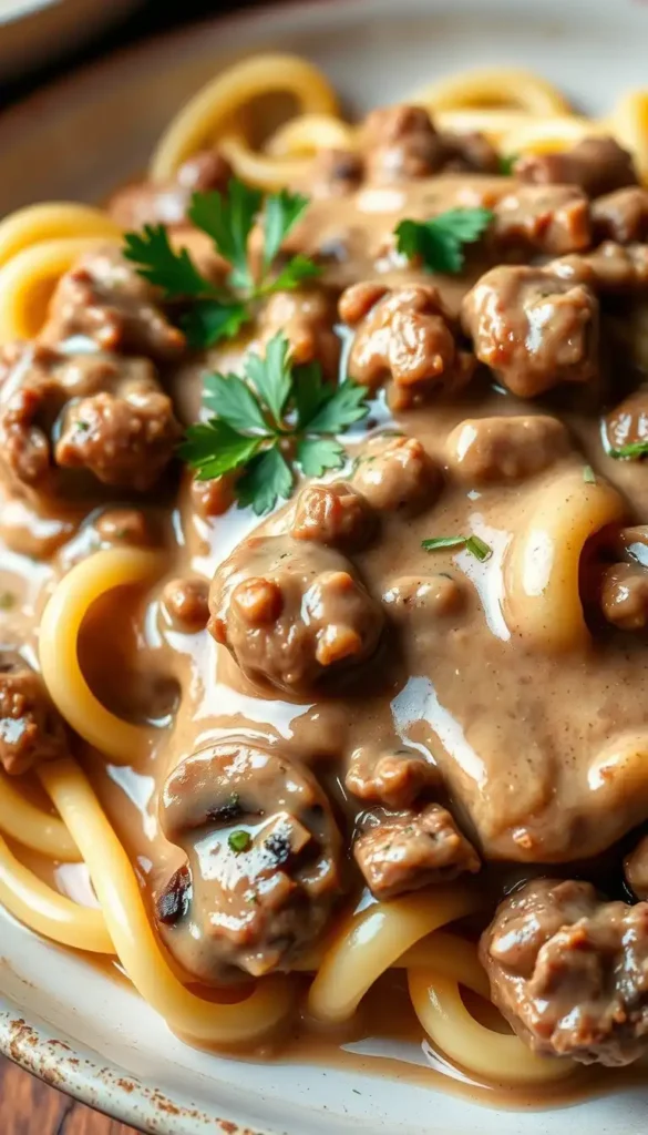 4. Creamy Beef Stroganoff Pasta