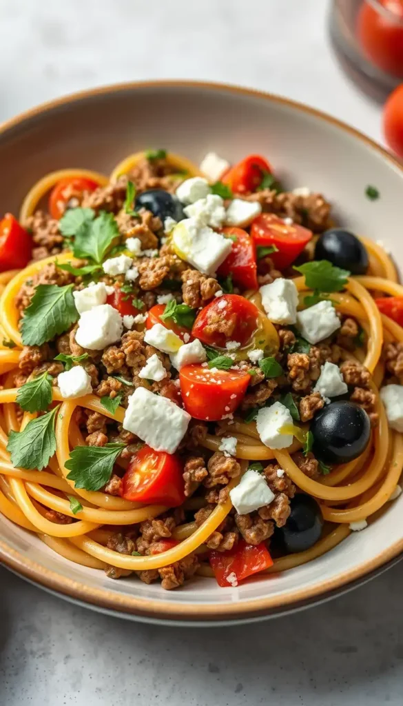23. Mediterranean Ground Beef Pasta