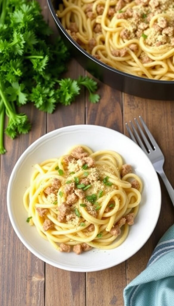 14. Ground Beef Carbonara (Easy Version)