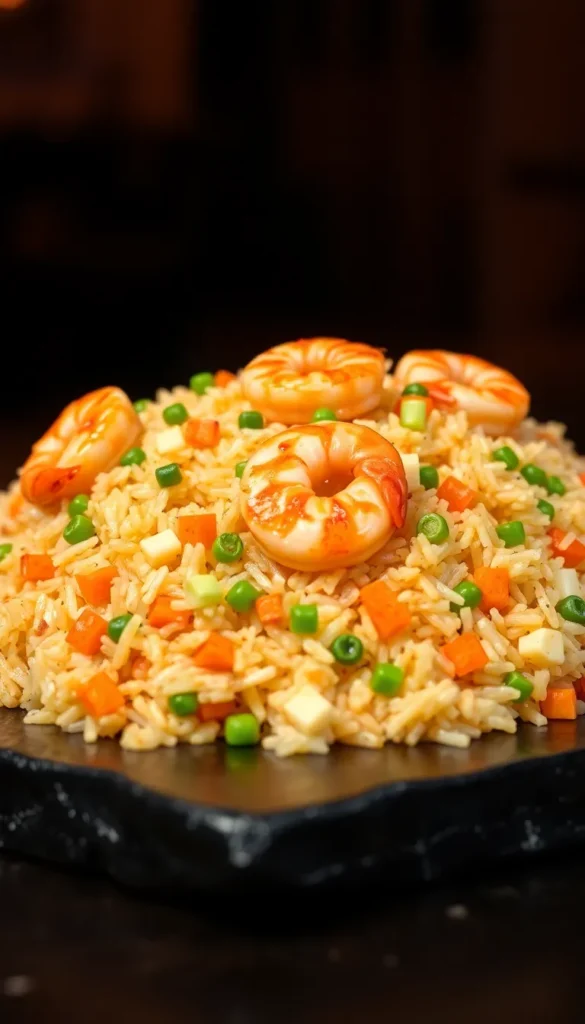 Hibachi fried rice is a Japanese-style fried rice typically cooked on a high-heat flat grill called a teppan or hibachi grill. It’s known for its light, fluffy texture and savory taste, with simple yet flavorful ingredients like garlic, soy sauce, egg, vegetables, and sometimes shrimp or chicken.