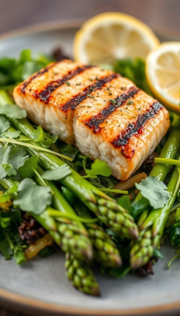 - Top with grilled salmon.