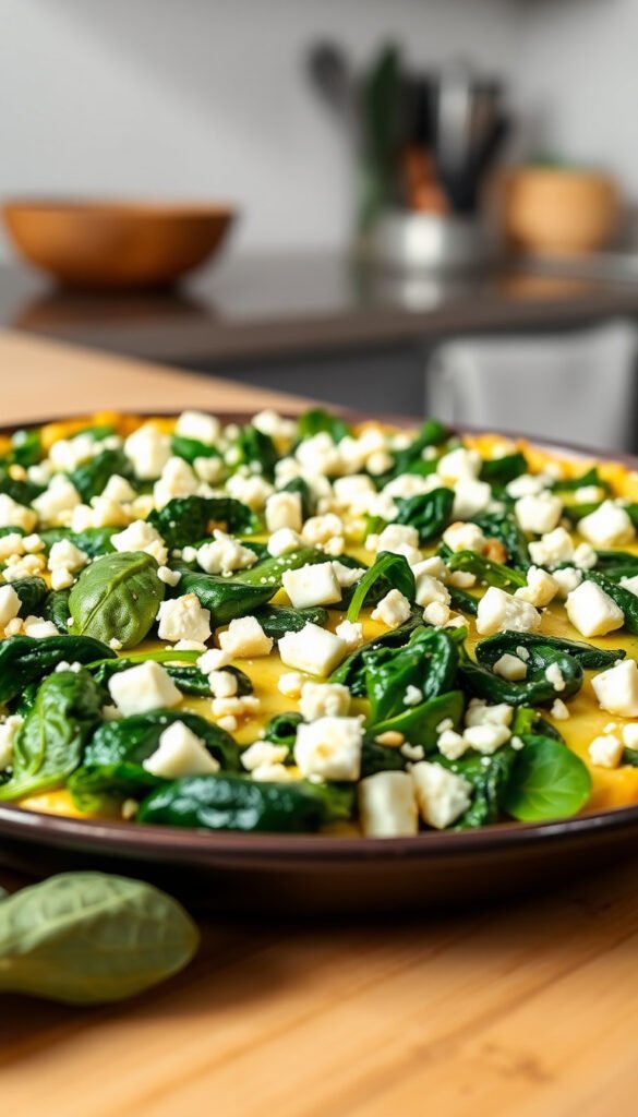 Mix ingredients and bake until fully set. A great veggie-packed option.