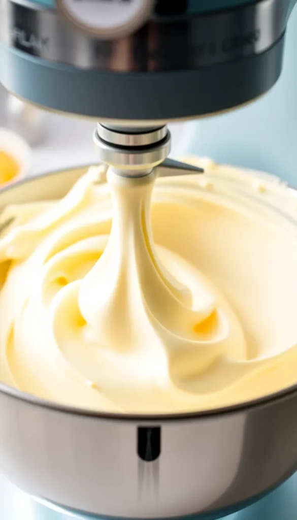 Beat the room-temperature butter on medium speed for 2–3 minutes until pale, smooth, and fluffy. This step creates the foundation for a light frosting.