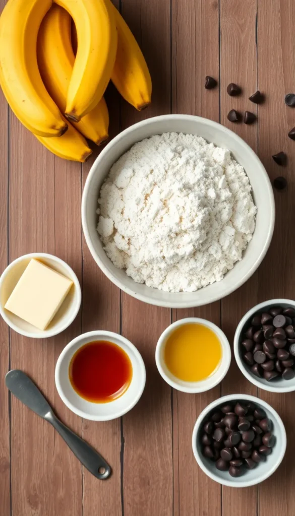 Ingredients for Mini Banana Chocolate Chip Muffins