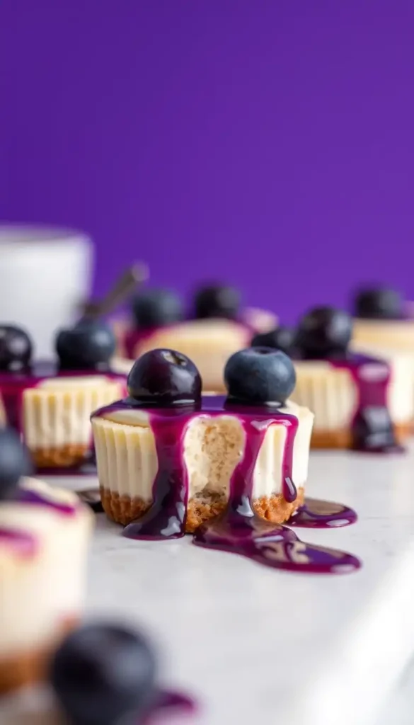 15. Mini Vegan Biscoff Cheesecake with Blueberry Sauce