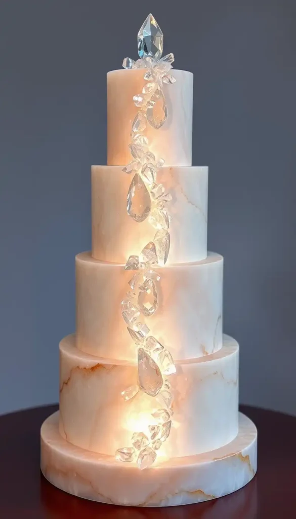 Opalite is known for its soft milky glow, rainbow shine, and calming spiritual meaning. When used as wedding cake inspiration, this crystal becomes a symbol of: