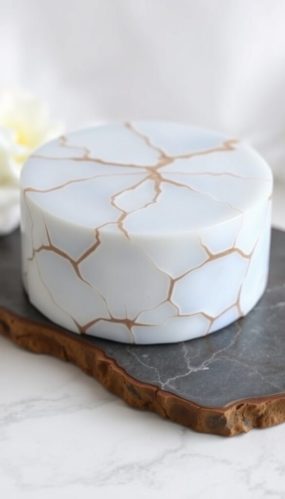 This cake is shaped like a rectangular opalite gemstone block—simple yet dramatic.