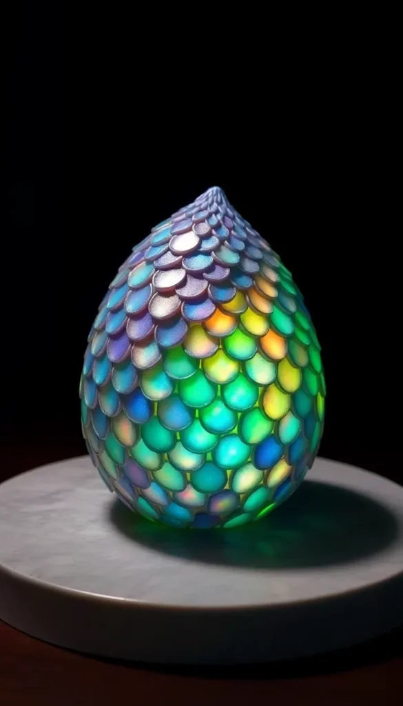 A textured egg-like cake with opalite shimmer adds fantasy adventure.