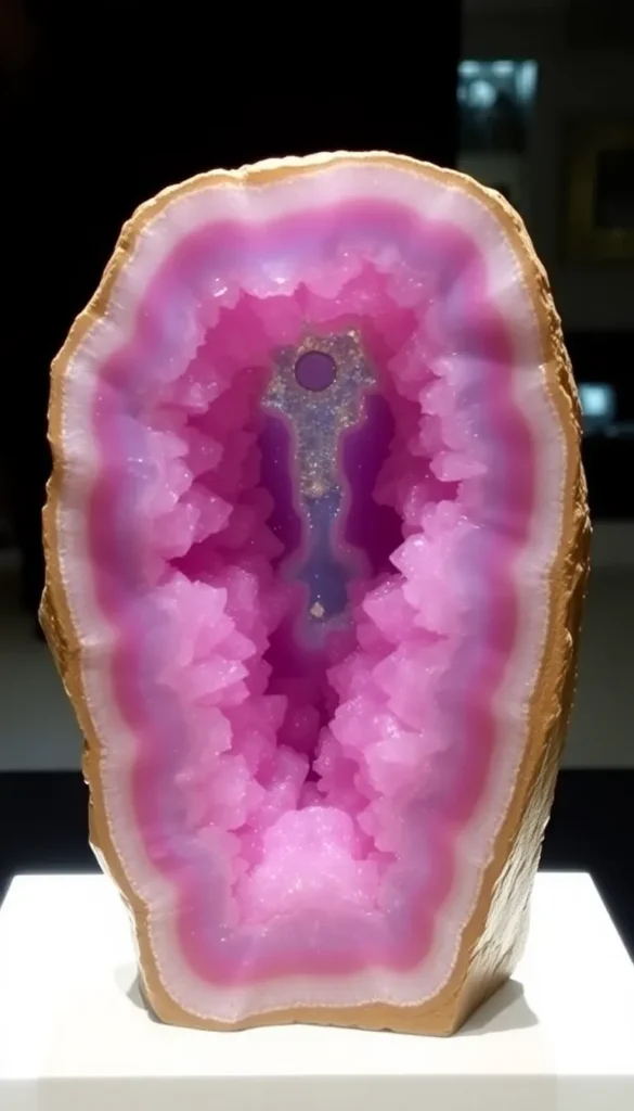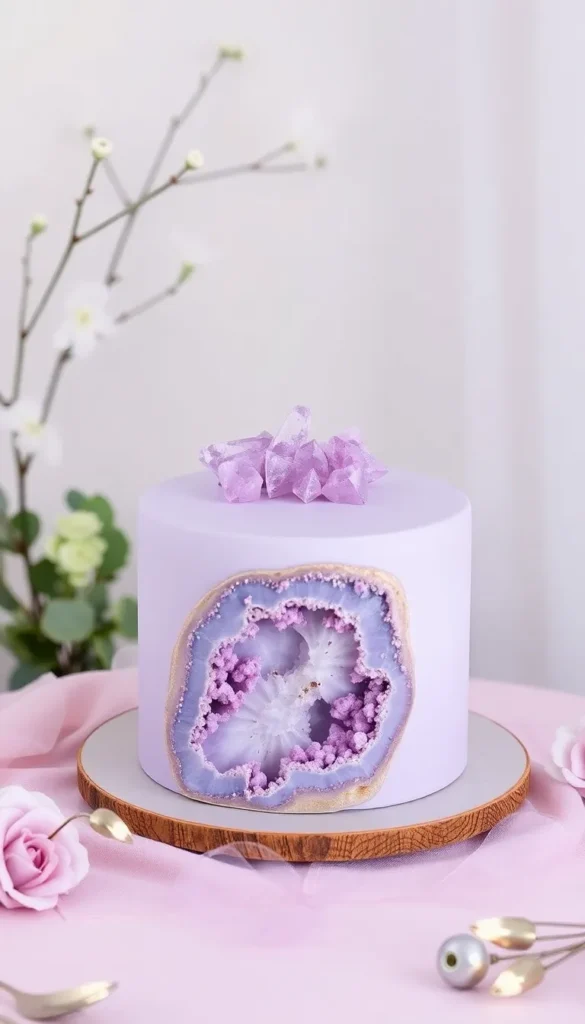 Only one side of the cake is carved into a geode, making it elegant yet eye-catching.